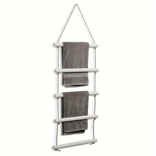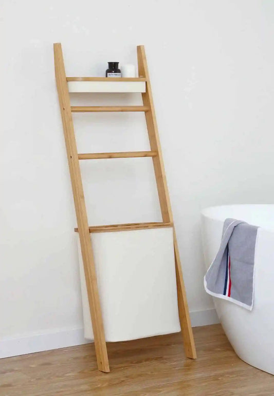 Échelle Porte Serviette Sur Pied en Bois et Inox