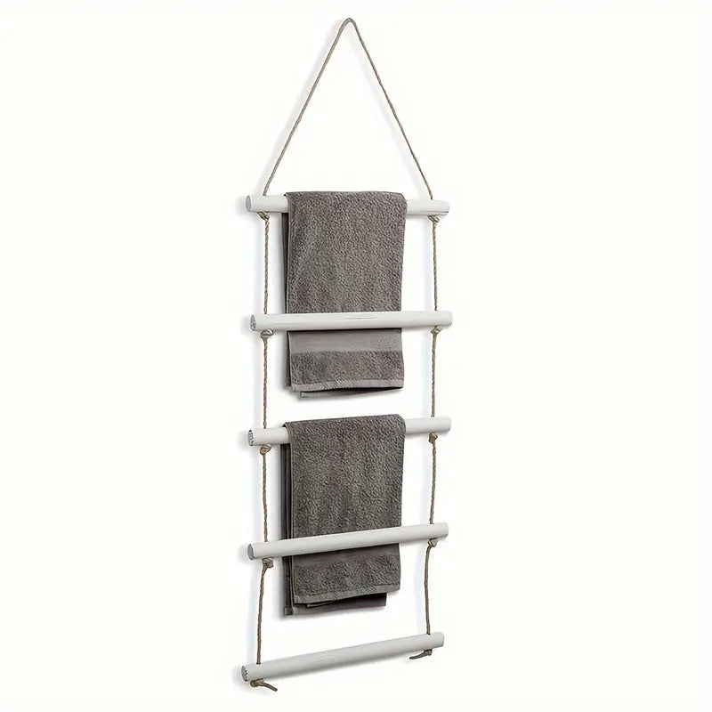 (132)L’échelle porte serviette en bois est l’accessoire idéal pour votre salle de bain. Pratique et esthétique, elle apporte une touche d'élégance tout en vous offrant une solution astucieuse pour organiser vos serviettes. Avec ses 5 échelons, elle allie fonctionnalité et style.