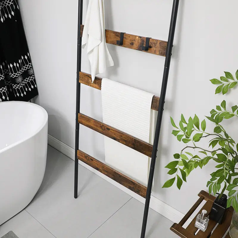Échelle Porte Serviette Sur Pied en Bois et Inox