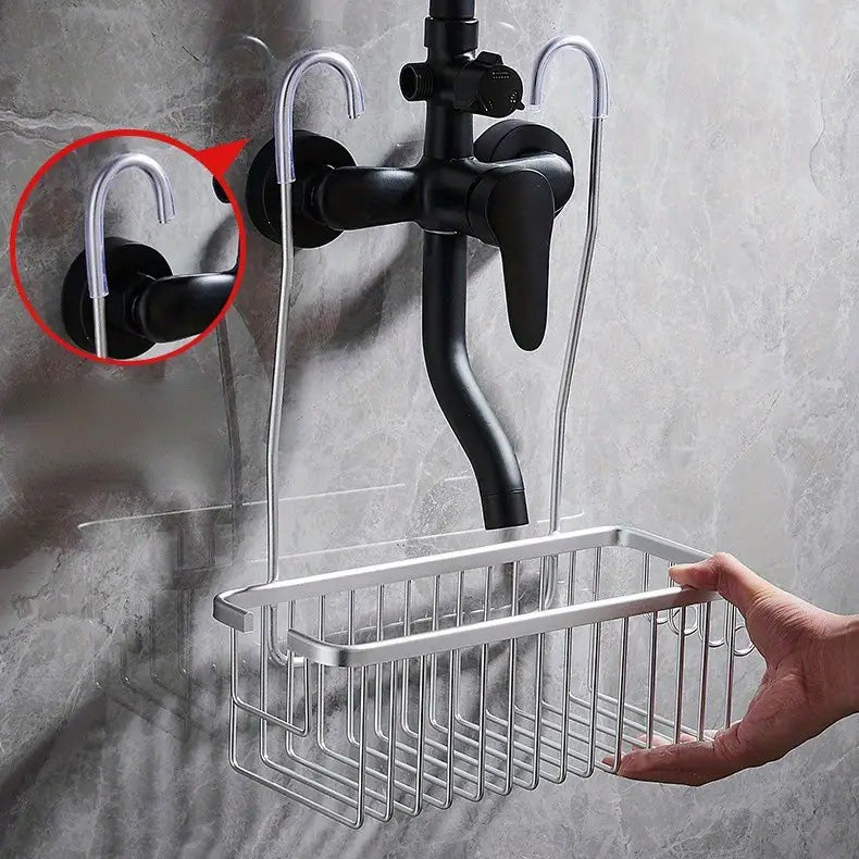 (132)Transformez votre salle de bain en un espace organisé grâce à cette Étagère Douche Suspendue en Aluminium. Pratique et robuste, elle vous offre un rangement astucieux avec ses crochets de suspension pour optimiser l'espace sans effort