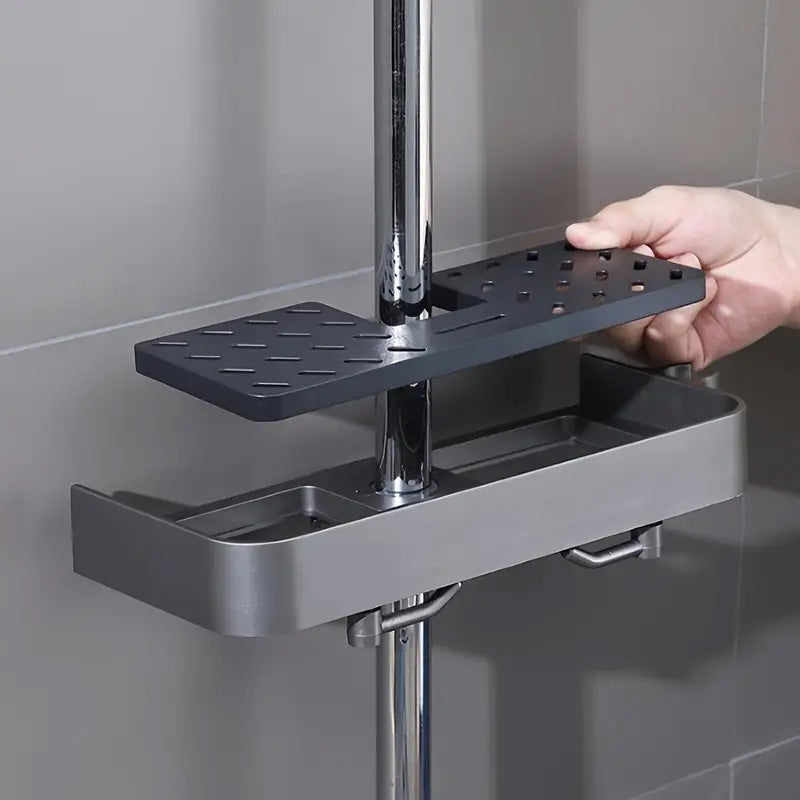 (132)Pratique et élégante, cette étagère douche offre un rangement optimisé pour votre salle de bain. Grâce à son crochet ajustable, elle s’installe facilement sans percer, assurant une organisation fonctionnelle et moderne.