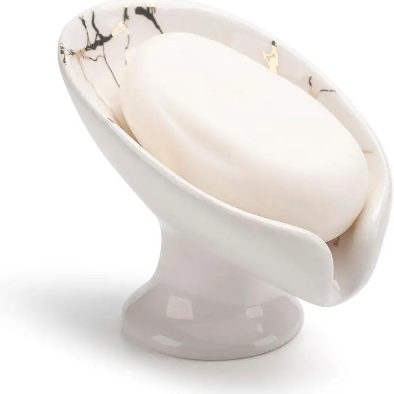 Porte Savon Auto-drainant en céramique blanche marbrée