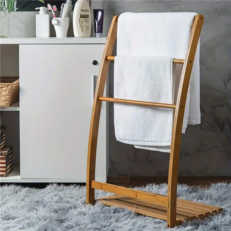 Ce porte serviette est spécialement conçu pour les salles de bain modernes. Son design sur pied permet un usage flexible et pratique, tout en ajoutant une touche naturelle grâce à la chaleur du bambou. Il offre une solution élégante pour ranger vos serviettes, tout en préservant l'harmonie de votre espace.