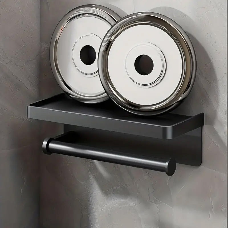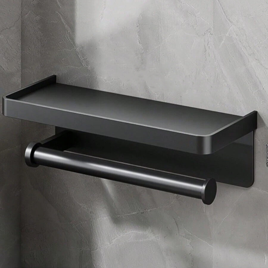 (132)Découvrez le Porte Sopalin avec Étagère à épices, une fusion parfaite d'élégance et de fonctionnalité. Ce porte serviette mural en aluminium noir allie design moderne et praticité. Avec son système auto adhésif, vous n'avez pas besoin de percer vos murs pour une installation facile et rapide.