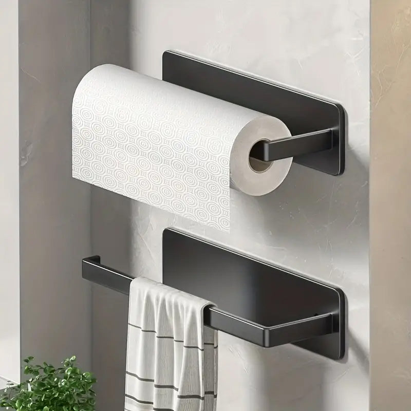 Ce porte serviette mural en fer est un ajout précieux à votre espace. Grâce à son installation sans percer, il s'intègre parfaitement dans tout environnement. Adapté pour des murs en blanc, gris ou noir, il s’adapte à toutes les décorations tout en offrant une solution de rangement élégante et pratique pour votre cuisine.