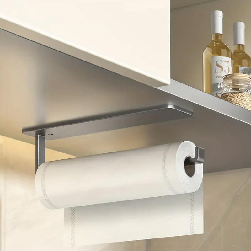 (132)Un porte serviette alliant élégance et simplicité pour votre cuisine. Ce modèle mural en fer se distingue par sa fonctionnalité auto adhésive, garantissant une installation facile sans percer.