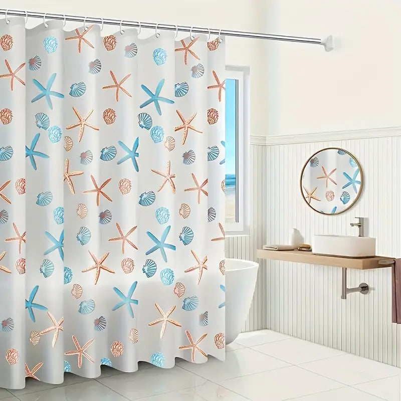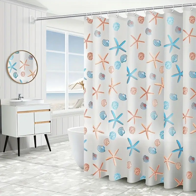(132)Ajoutez une touche d'évasion à votre salle de bain avec le magnifique Rideau de Douche à Motif Étoile de Mer. Fabriqué en polyéthylène durable, ce rideau allie praticité et esthétisme pour sublimer vos moments de détente.