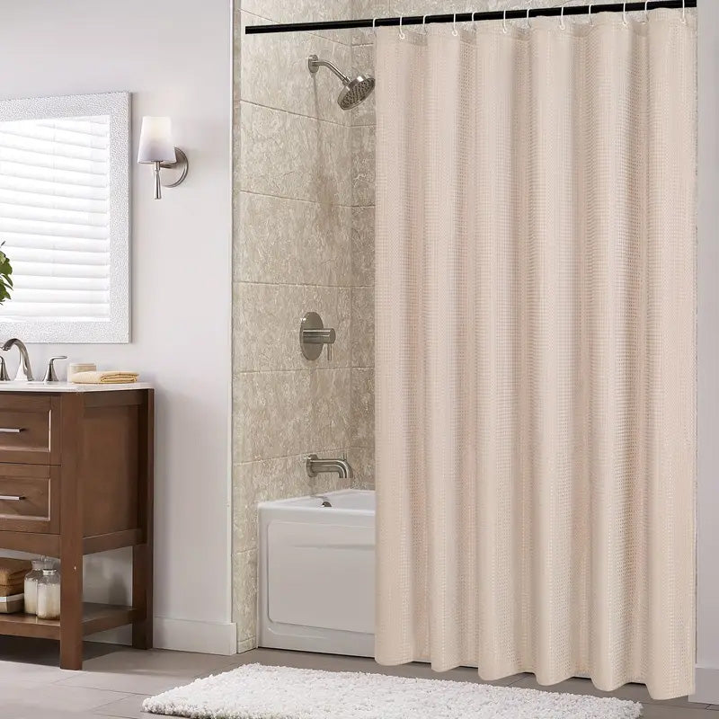 (132)Le rideau de douche Texture gaufrée transforme votre salle de bain en un espace raffiné. Conçu en polyester, il garantit une longue durée de vie et une résistance exceptionnelle. Ses anneaux pratiques facilitent l'installation, tandis que sa texture gaufrée ajoute une touche d'élégance.